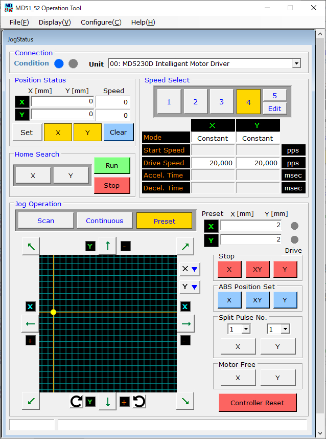 MD5230D can execute linear and circular interpolation in XY orthogonal coordinates.